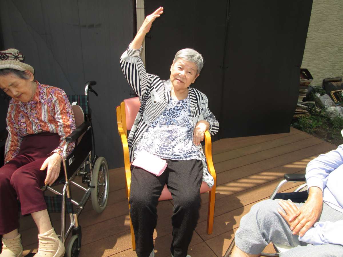 お日様の下、元気良く体操したり、仲良く楽しく風船バレー ・・・ と