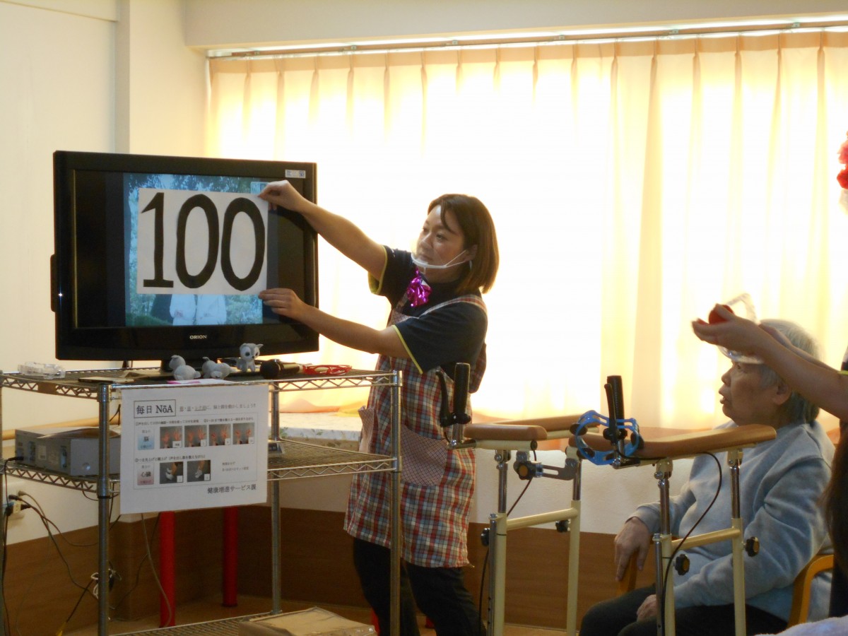 口腔体操(パタカラ)のふるさとを、皆様で合唱(#^.^#)その後各フロアの代表五名様に歌って頂きました!!
