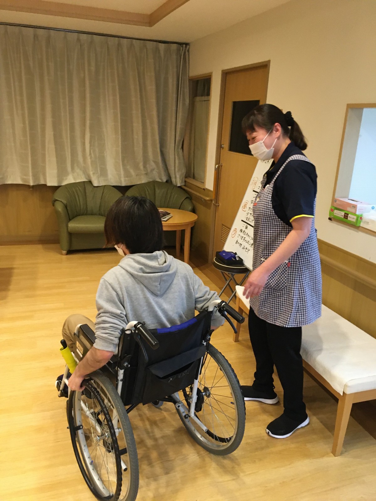 今回はシニアセラピーの様子と先日行った身体拘束廃止委員会の車椅子体験の様子を