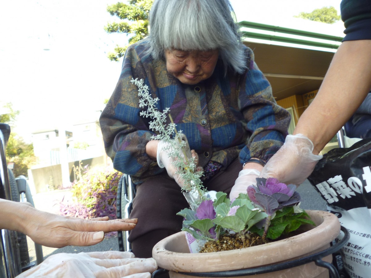 今日は中庭でお花を植えました