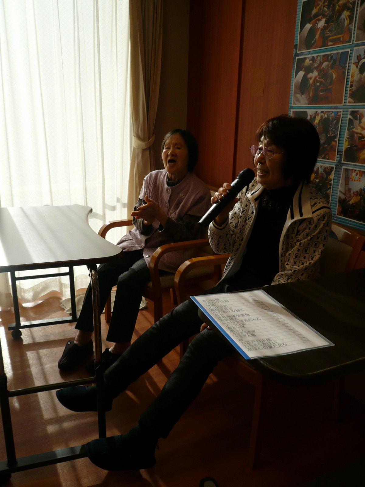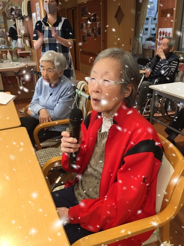 今日は1階ホールに皆さん集まって頂き、カラオケ大会を開催致しました。