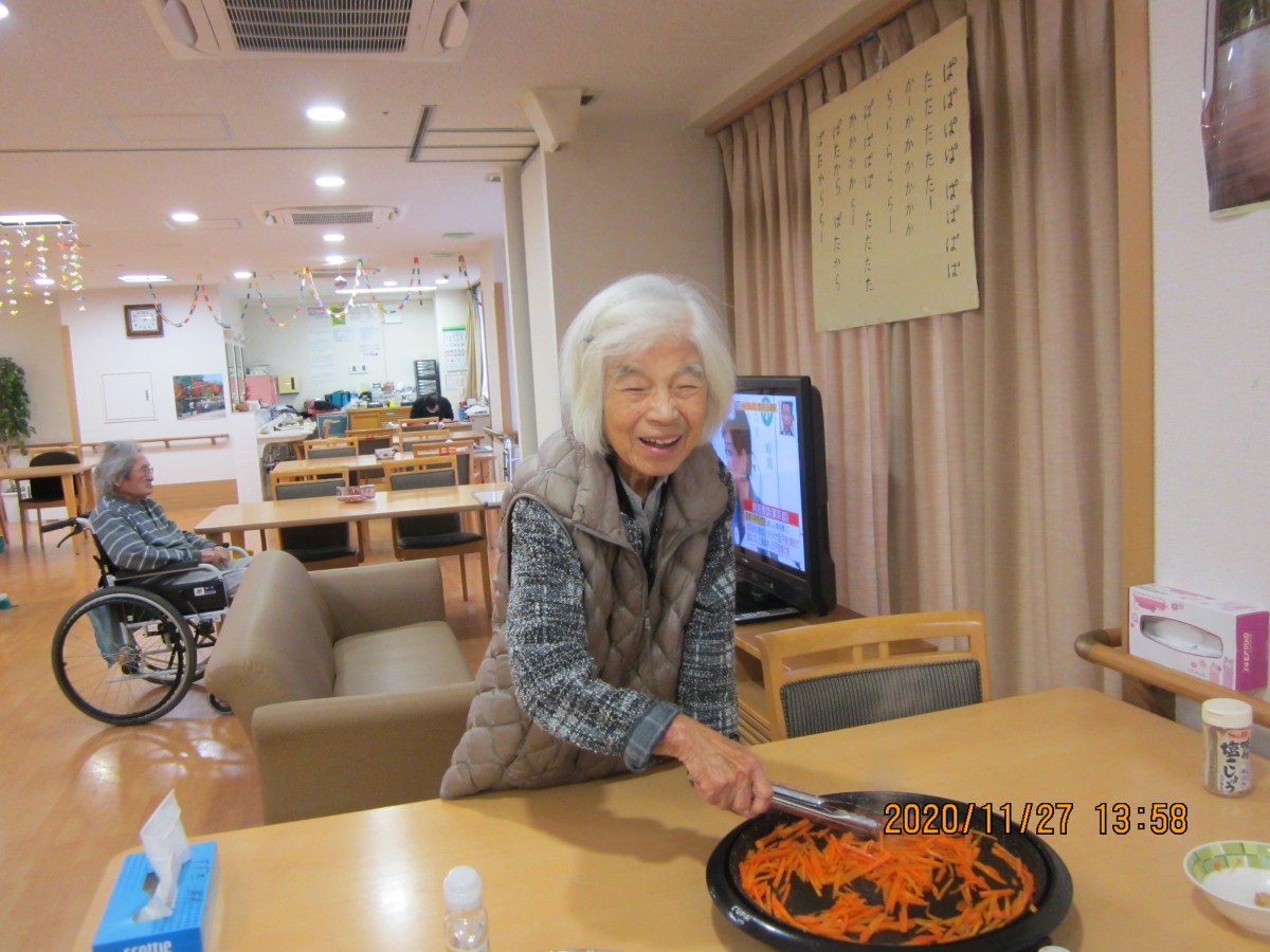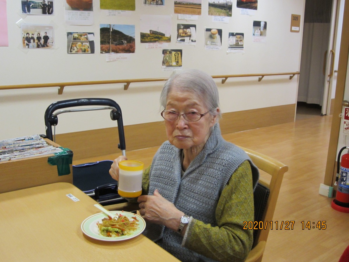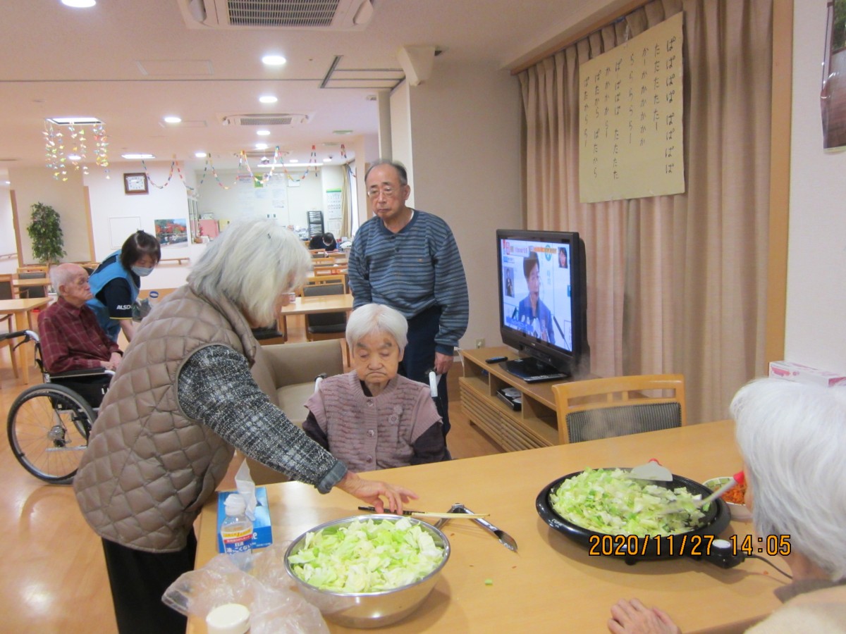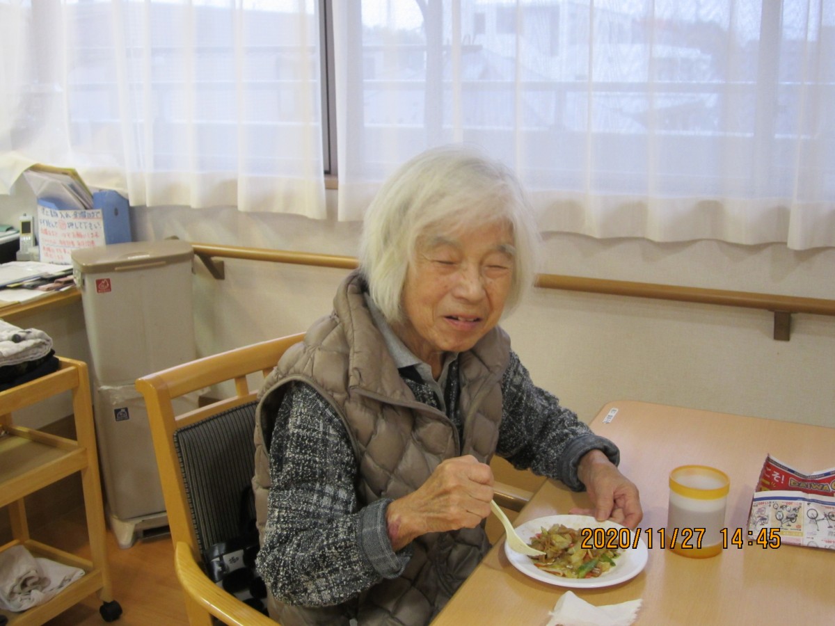 入居者様の皆さん、スタッフ、一緒になって、それはそれはおいしい焼きそばの出来上がりです!! 皆さん一緒になって作った焼きそばの味は格別ですね。