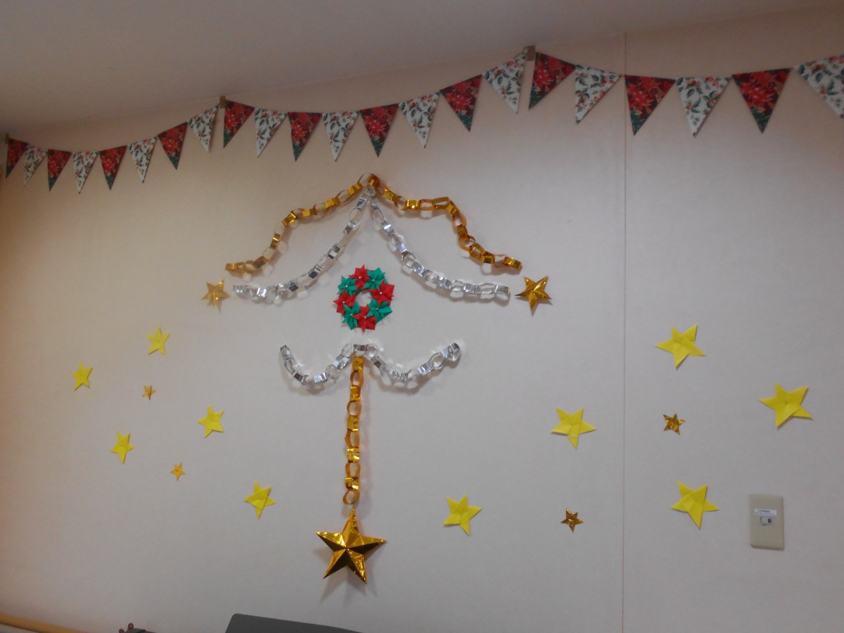 さらにみなさまの頭上には緑と赤の輪飾りや立体に折られた星が輝いています☆☆