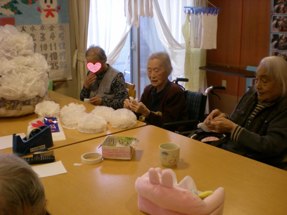 真剣にお花紙を広げられています!
