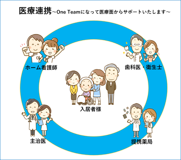 「One Team」となって医療面からの入居者様へのサポートもしております。