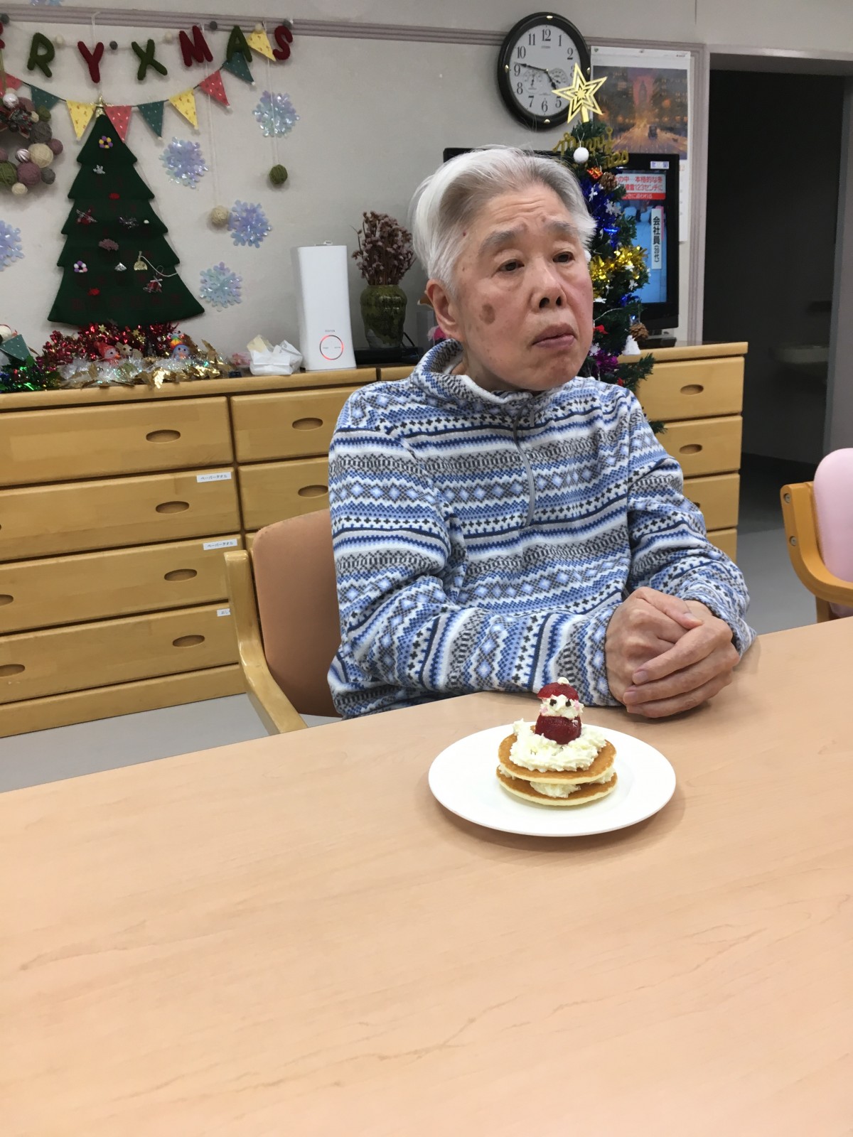 下準備中のスタッフの手際を見て「なかなかやるじゃない」とご満悦な表情のご利用者様(笑)