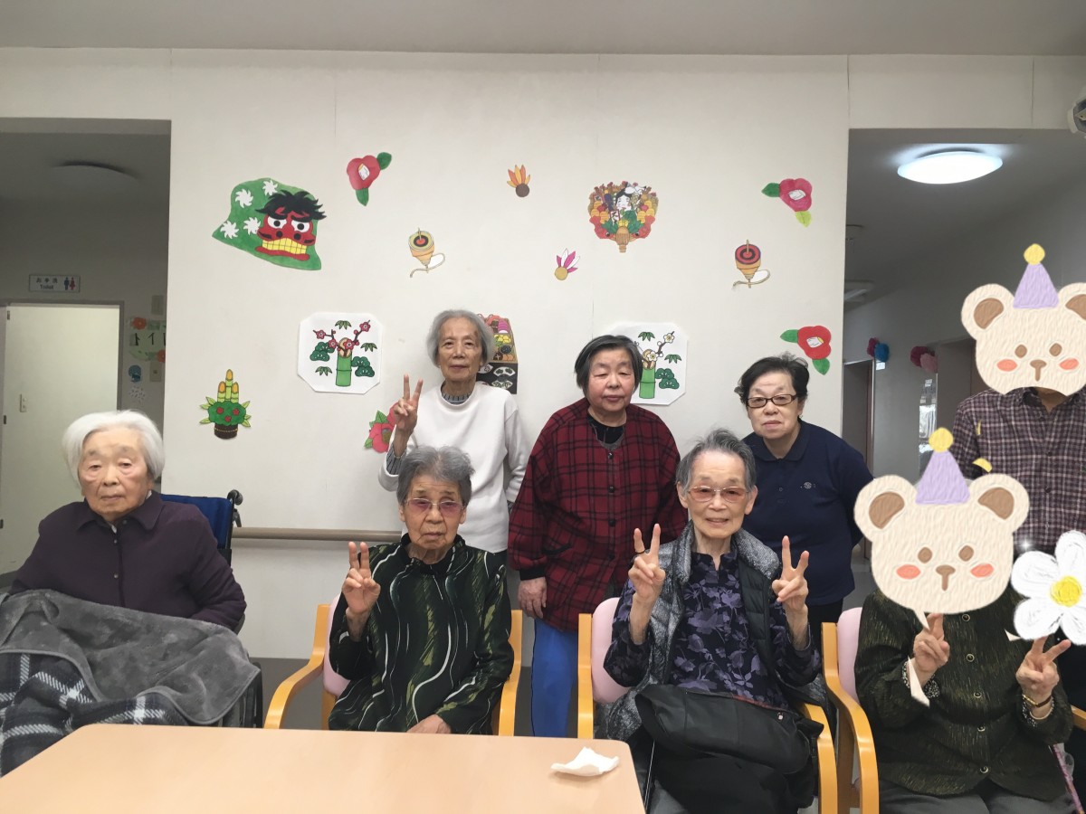 本日は3階、お正月飾りの前で記念撮影をしました!