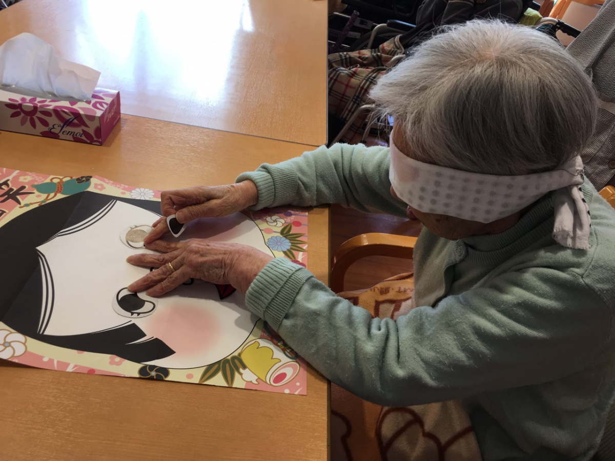 目隠しして福笑いです。