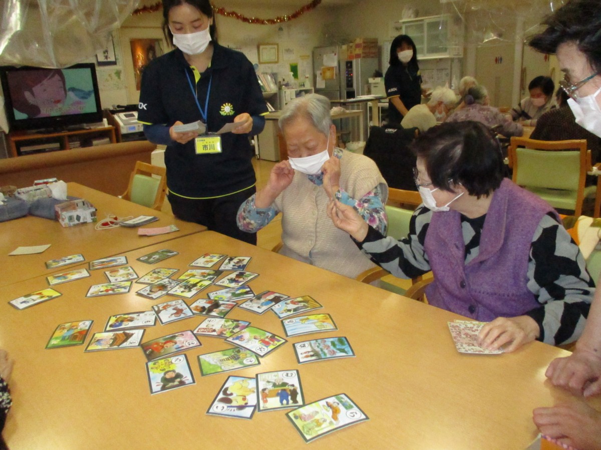 今日はみんなでお正月遊びをしました。カルタやトランプ等久しぶりにされ