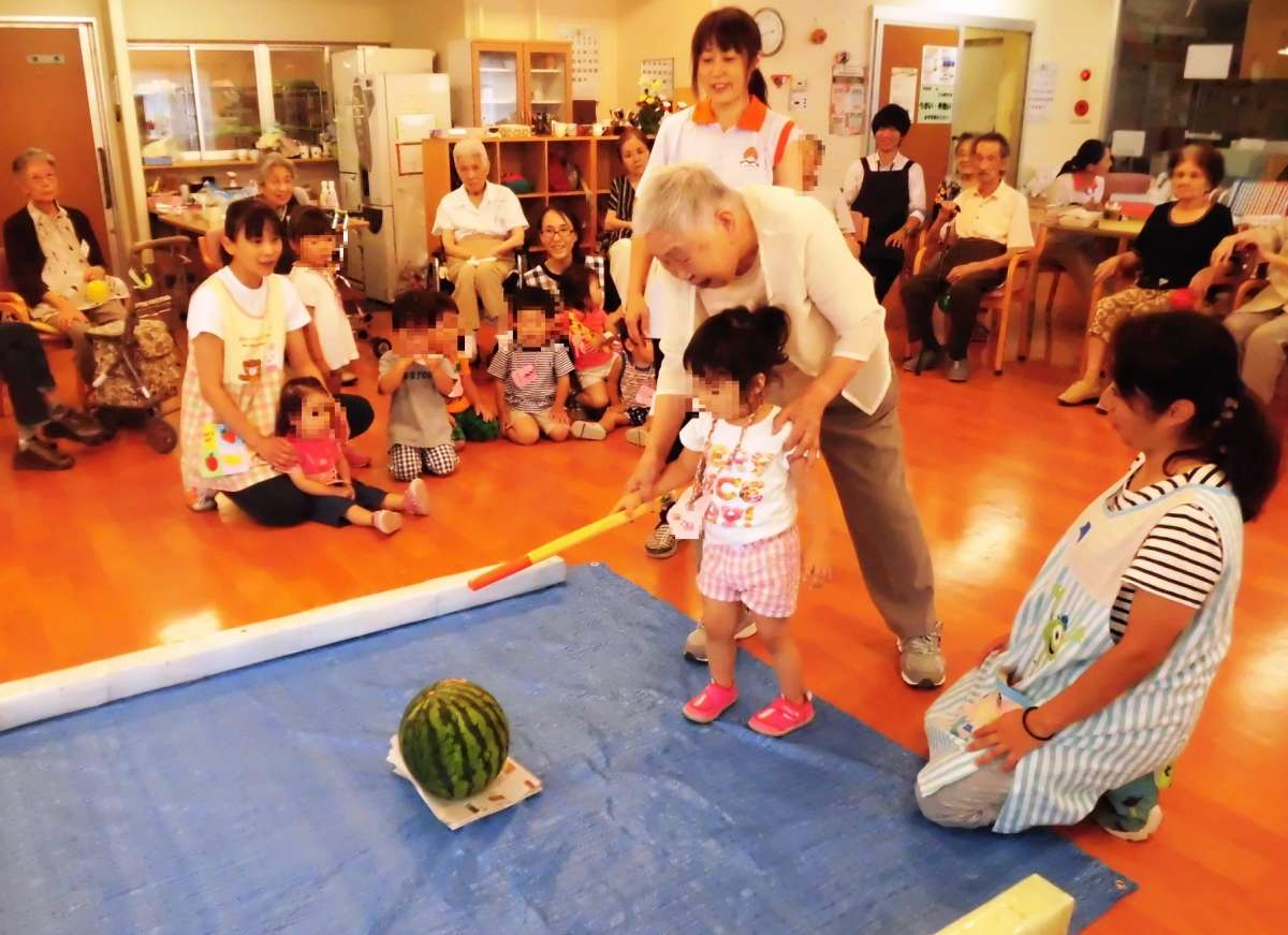 ご利用者様と協力していただきスイカを割って頂こうじゃないかと。