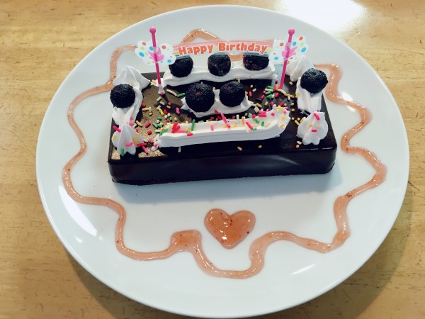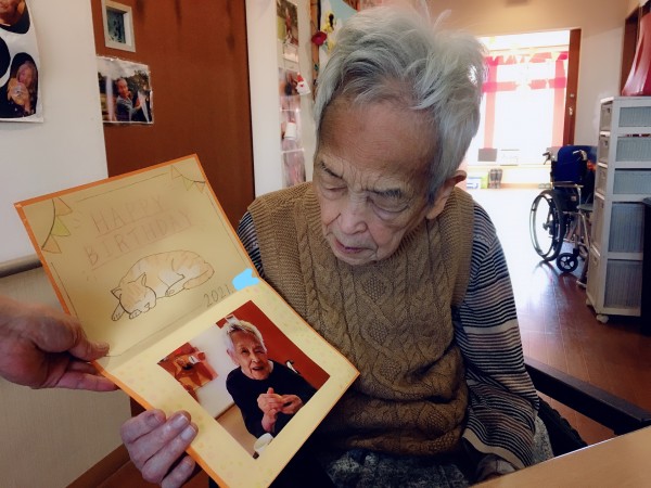 ケーキと誕生日カードのプレゼントをご用意し、おやつ前のお時間に開かせていただきました。