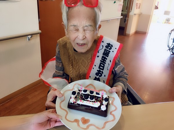 ケーキと一緒にお誕生日の利用者様がパシャパシャ!☆
