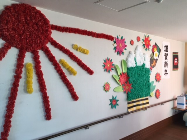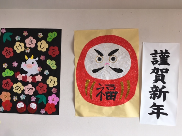 1月の壁飾り ~立派な門松に、だるまさん!~