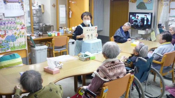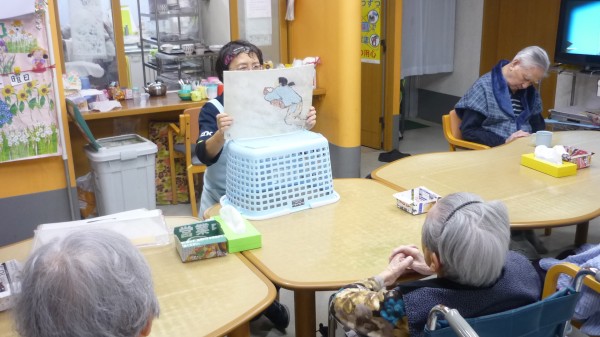 『雪女』と『ねこの体操』と2本立てで行いましたが、入居者様の反応も上々でした!