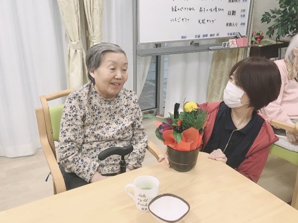 こちらのご入居者様の娘様は、季節に合わせて色々なお花をプレゼントしてくださいます❀ 今回は和花でまとめてあります。ご入居者様も大変喜ばれていました☺ お花があるだけで、部屋の雰囲気がぱっと明るくなるものですね!