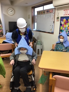 デイサービスかたくりの里大泉では利用者様と避難訓練を行い