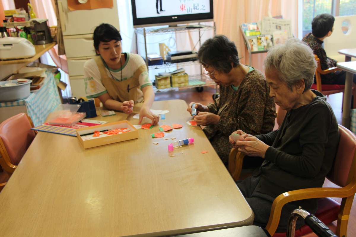 ホーム内も、夏から秋への衣替えをかねて、ご入居者様と秋の飾り作り を行いました!!