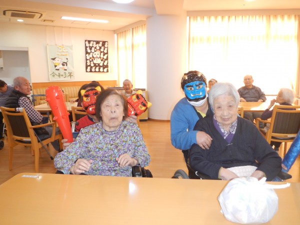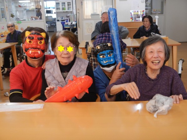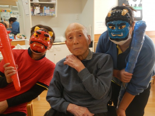 この後もご利用者様の優勢は続き、鬼も降参して、みなさんと仲良く記念撮影を行ないました。