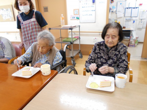 桃フロア、桜フロアのご利用者様皆様で、ハッピーバースデーの大合唱♪