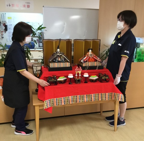 この雛人形がある事で、とても施設の雰囲気が明るく豪華になり、皆様が喜んでくださっています!!