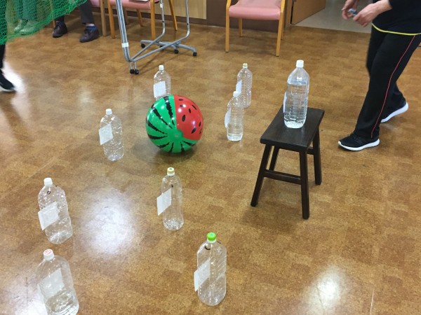 得点の高いペットボトルには水をパンパンに入れて簡単には