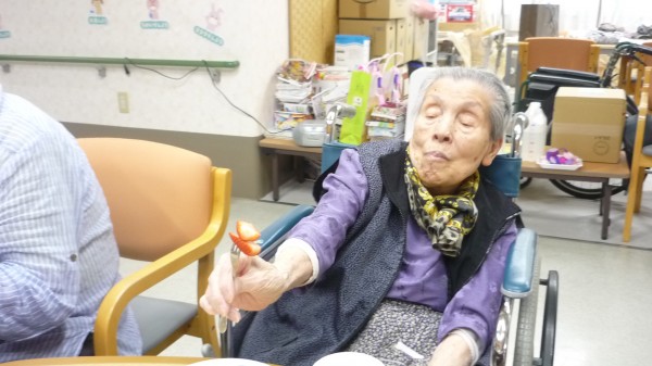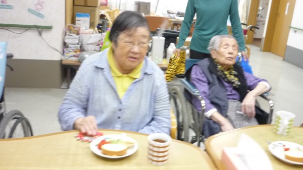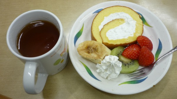 おやつの時間に、皆様でロールケーキを召し上がり、お祝いさせて頂きました。