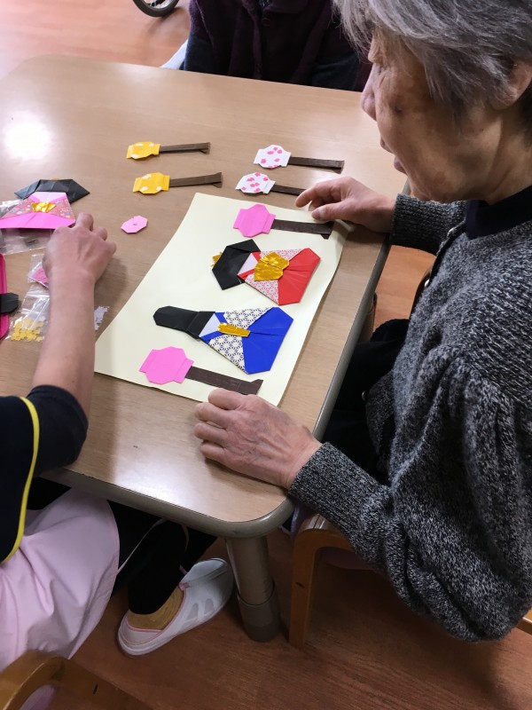 ひな人形の折り紙をされてま~す(*^^)v