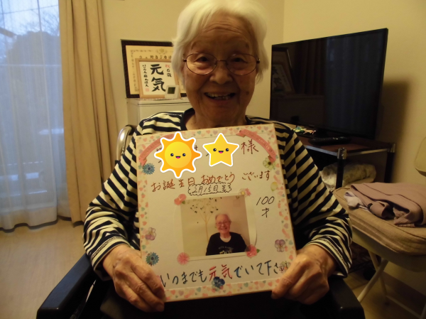 先日、めでたく100歳を迎えられた利用者様のお祝いを