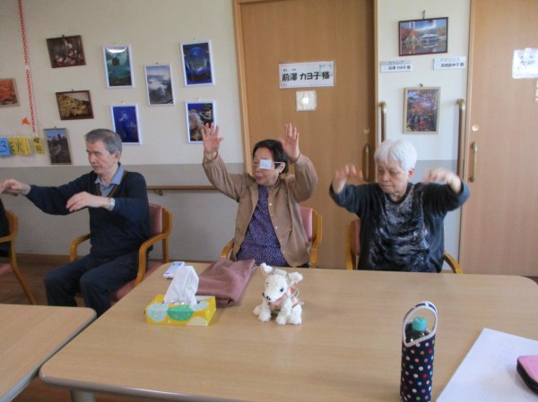 DVDを観ながら、ご利用者様・スタッフと毎日頑張っています。