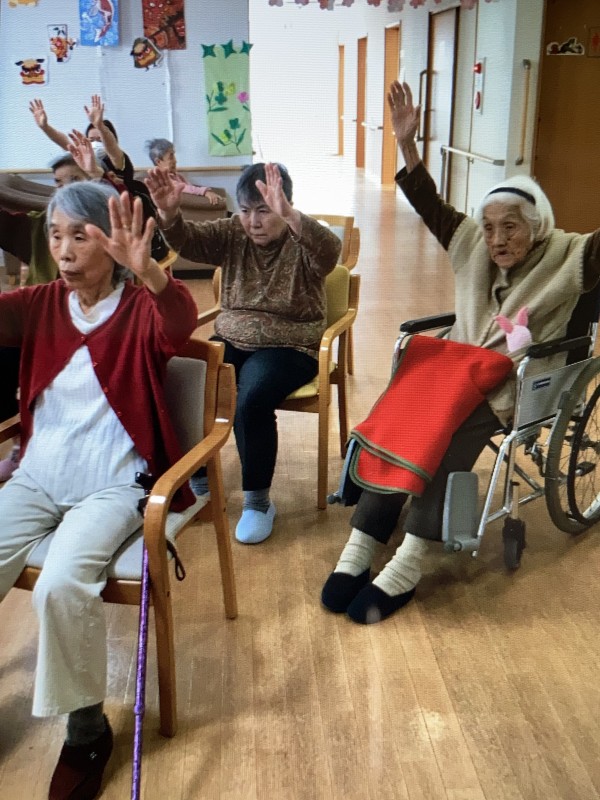 始まる前と終了後にはテレビ越しにお互いに手を振りあって入居者様たちも楽しそうにされていました!
