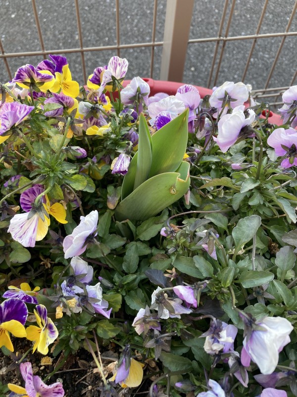 見えますか…色鮮やかなパンジーの中に… そう!チューリップです????