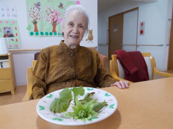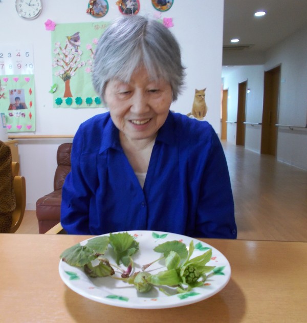 寒い日が続き、外気浴もできないので、少しでも春の訪れを感じて頂こうとスタッフが庭から「ふきのとう」を持ってきました。