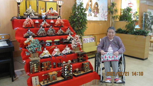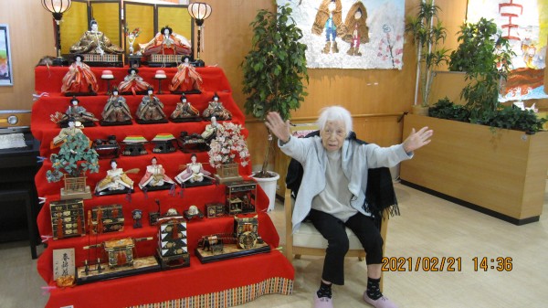 「すこや家 西東京」の ひな人形の前にはまだまだご入居者様が集まってきていただいております。