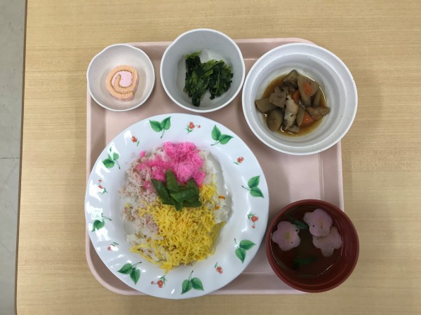 女性、男性、共に「ひな祭り 特別食」仲良くを頂きました。