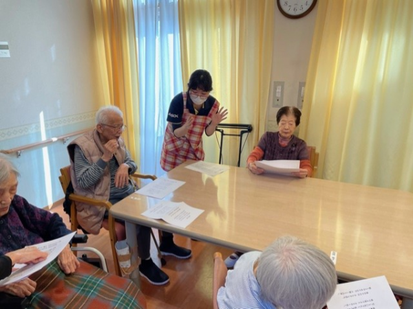 ようやく春らしい季節になってきました!!みんなの家・川口では3月3日にひな祭り会を行いました。写真は入居者様と共にひな祭りの歌を大合唱している様子です。職員は普段はレクリエーションのサポートや排泄等の日常生活動作のお手伝いをさせて頂いております。グループホームではこの時間はこれを行わなくては