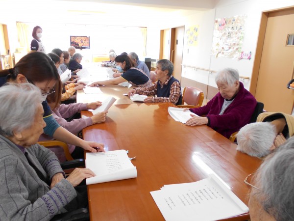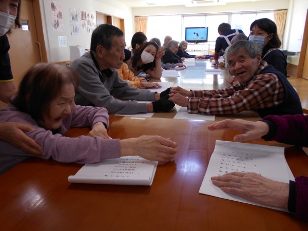 お雛様レクでは、皆様と一緒に春の歌を大合唱♬