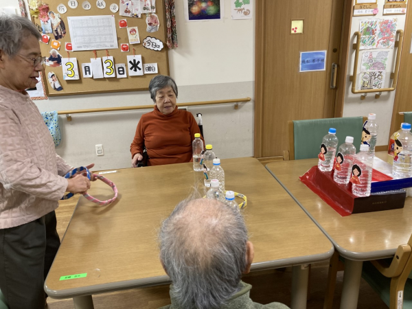 お昼に、ちらし寿司を食べ、ペットボトルを利用して輪投げをしました(^▽^)/