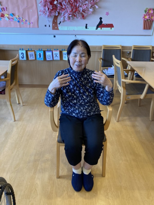 1Fの利用者様は体操の流れを把握している為か、先生が動く前に動き出すぐらいベテランさんが多いです。
