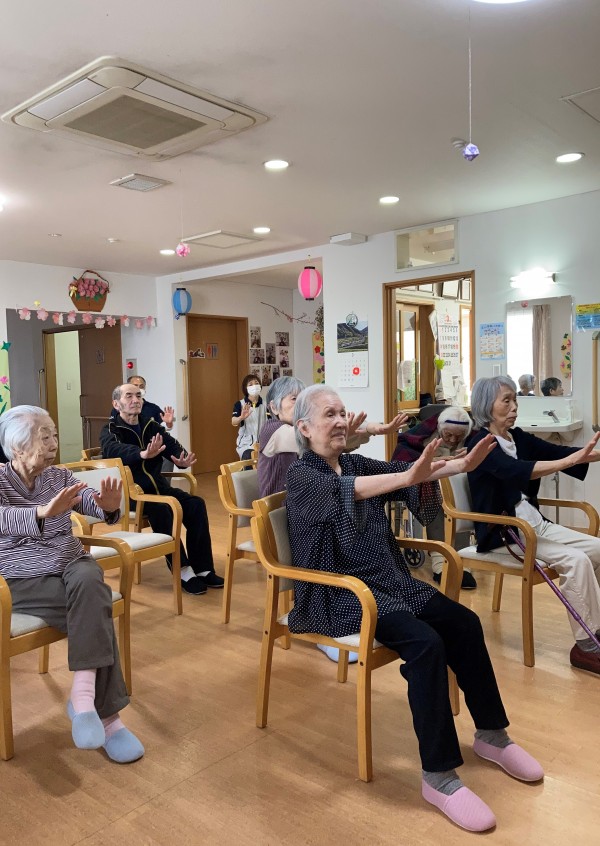 今回は皆さま慣れてこられたようで、元気よく音楽にあわせて楽しく身体を動かしました。