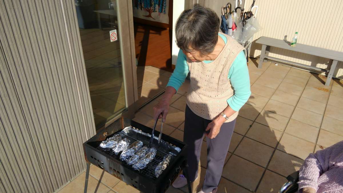 皆様にも手伝ってもらい,おやつで熱々の焼き芋を頂きましたー!!