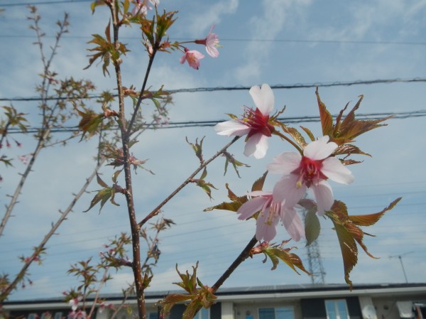 数種類ある桜の木には、つぼみからいつの間にか、きれいな花を開花させた姿を発見。