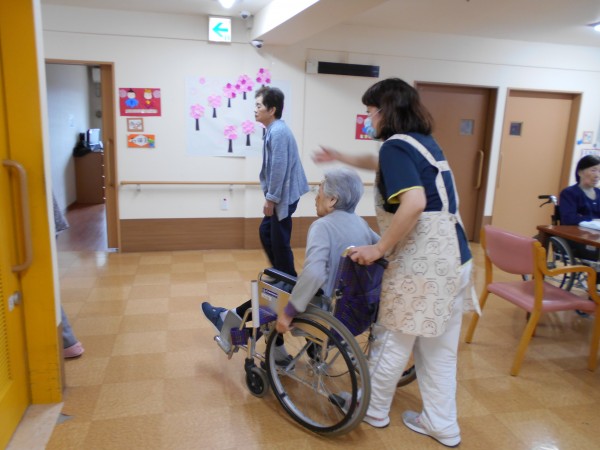 桃フロアの車椅子のご利用者様と一緒に避難口まで誘導!!