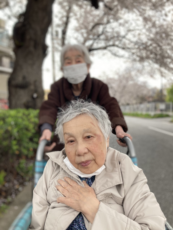 今日もそれぞれの桜の楽しみ方をしています。のんびりと歩いて、座ってにっこり! ときにはおどけて!