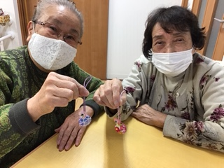 くるみボタンのストラップを作りました♪