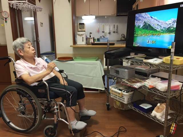 夕方になり少し涼しくなったので、嚥下体操もかねてカラオケを行いました!!