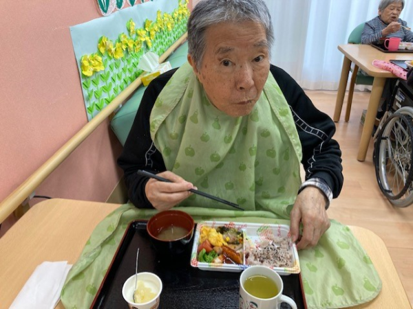 グループホームみんなの家・墨田では、4月3日にお花見に行けない方も、一緒に楽しめるように手づくりお弁当を召し上がりました。