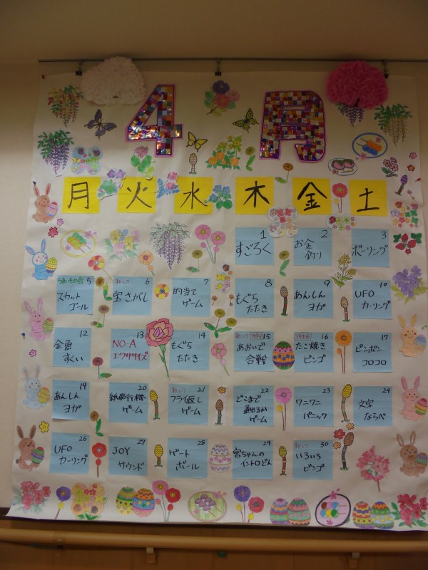 今回は皆さんで作成した、4月のカレンダー、壁画、誕生日カレンダーを紹介します!