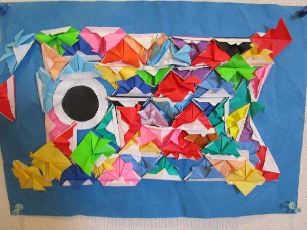 たくさんカブトを作ったら、カブトを鱗にして鯉のぼりを作ります。