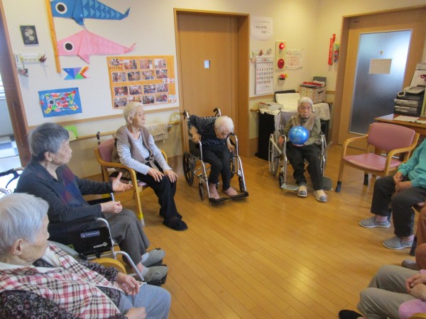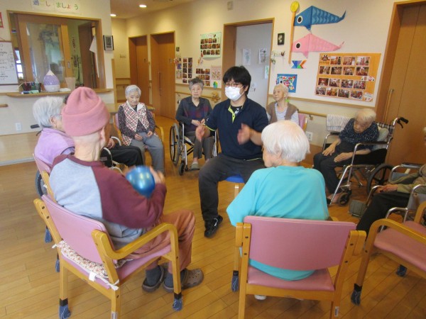 輪になって座り、軽く体を動かしてから スタッフが中心になりボールを投げていきます。