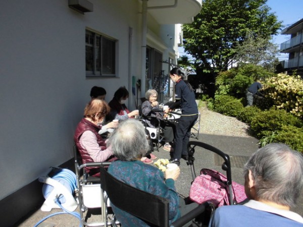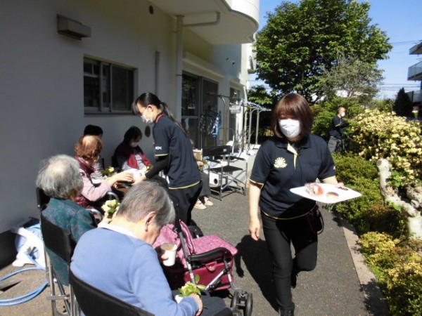 介護付有料老人ホーム「アミカの郷流山」庭でティータイム